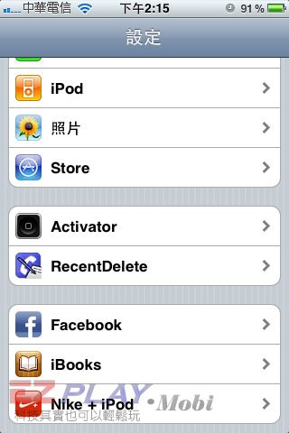 當您的 iPhone 做過 JB,在設定首頁下就會出現「Activator」設定項,